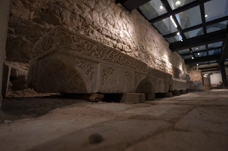 وتزدان جدران المصلى -الذي يغمره ضوء خافت- بنقوش وزخارف قديمة، كما يضم عددا من القطع الأثرية التي عثر عليها في الموقع، مما يحول المكان إلى رحلة بصرية في تاريخ الموصل الديني والعمراني.
