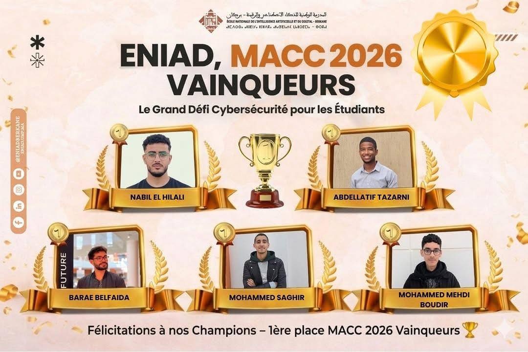 بقلم – بلال شكلال في إنجاز أكاديمي جديد يؤكد الحضور المتصاعد للكفاءات الشابة بجهة الشرق، تمكن طلبة المدرسة الوطنية للذكاء الاصطناعي والرقمنة ببركان، التابعة لجامعة محمد الأول، من حصد الجائزة الأولى وطنياً ضمن فعاليات مسابقة “أكاديميا للأمن السيبراني 2026”. وتندرج هذه المسابقة الوطنية ضمن مبادرة أطلقتها المديرية العامة لأمن أنظمة المعلومات (DGSSI)، التابعة لإدارة الدفاع […]
